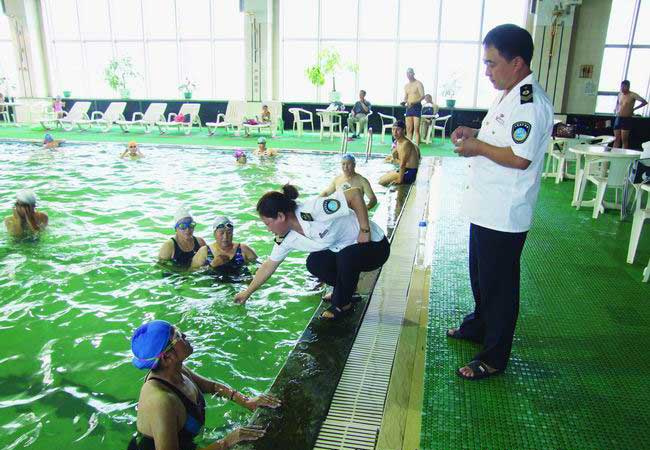 水質衛生的現場常規檢測由游泳池場館自身檢測,開放時間應每隔2小時檢測一次,各游泳場館應配備專門的水質管理員。